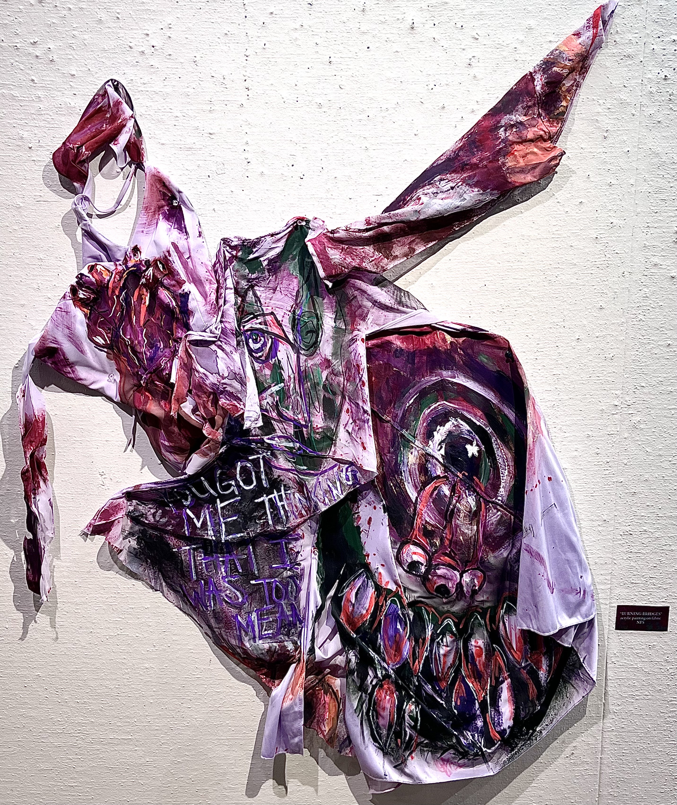 “burning bridges” 2022, Acrylic paint on tule dress