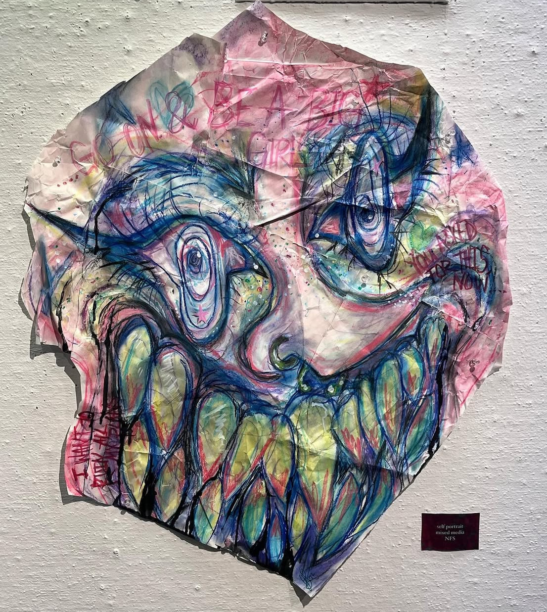 “self portrait”, 2022, Chalk pastels on newsprint